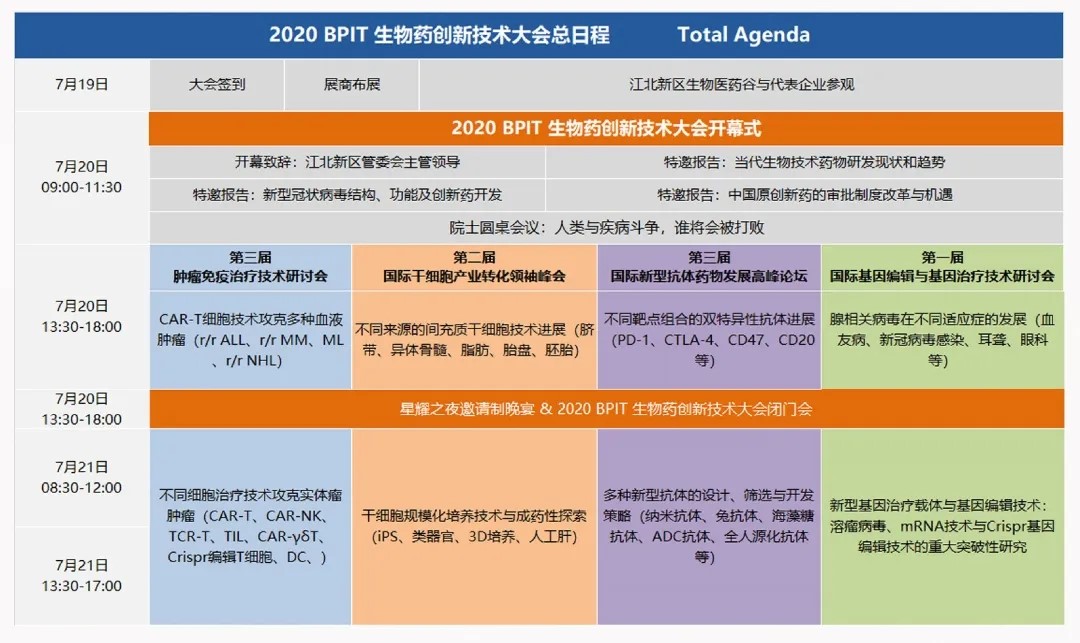 近百位國內(nèi)生物創(chuàng)新藥的權(quán)威領(lǐng)袖發(fā)言,數(shù)百家領(lǐng)先的生物制藥企業(yè)密切關(guān)注,逾千位醫(yī)藥領(lǐng)域的同行報名參加,數(shù)十種創(chuàng)新藥技術(shù)集體亮相,聚焦腫瘤免疫、新型抗體、干細(xì)胞再生醫(yī)學(xué)、基因治療等四個熱門生物醫(yī)藥領(lǐng)域,2020 BPIT 生物藥創(chuàng)新技術(shù)大會即將在中國南京國際青年文化中心拉開帷幕,相約2020年7月19-21日,向下一個創(chuàng)新藥黃金十年致敬,一起見證中國創(chuàng)新藥的新目標(biāo)新里程!