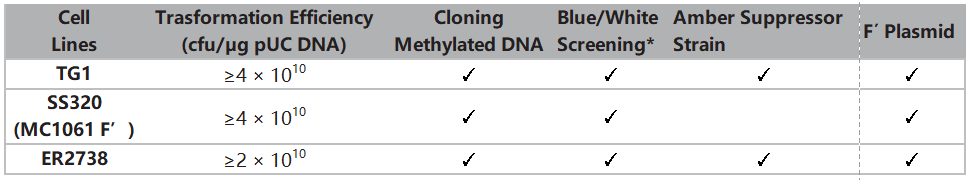 可直接替代Stbl3 / Stbl4 (Life Technologies) 或SURE / SURE2 (Agilent)。