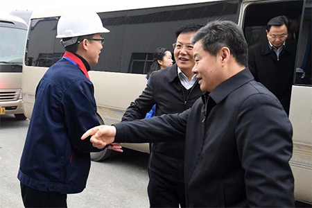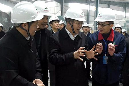 12月28日上午,荊門市委書記張愛國、市委副書記、代市長孫兵,率領(lǐng)全市四季度項(xiàng)目建設(shè)和招商引資拉練活動(dòng)的近百名與會(huì)代表,來到鐘祥市胡集鎮(zhèn)開發(fā)區(qū),走訪觀摩了剛投產(chǎn)兩個(gè)月的湖北世宇新型建材有限公司,并在生產(chǎn)車間認(rèn)真聽取了公司董事長趙雙對(duì)企業(yè)生產(chǎn)情況的介紹!張愛國書記在現(xiàn)場(chǎng)對(duì)企業(yè)保護(hù)生態(tài)環(huán)境,循環(huán)利用資源,加工生產(chǎn)新型環(huán)保建材石膏板,美化人民居住生活的好做法給予了充分肯定!